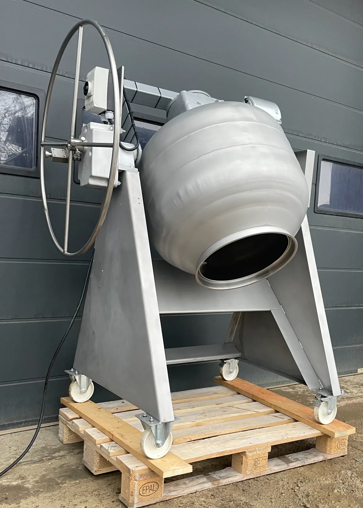 Urządzenie pochodzi z likwidacji zachodniej firmy, gdzie było wykorzystywane m.in. do mieszania proszków oraz przypraw. Brak tabliczki znamionowej – według informacji od poprzedniego właściciela jest to produkcja niemiecka.