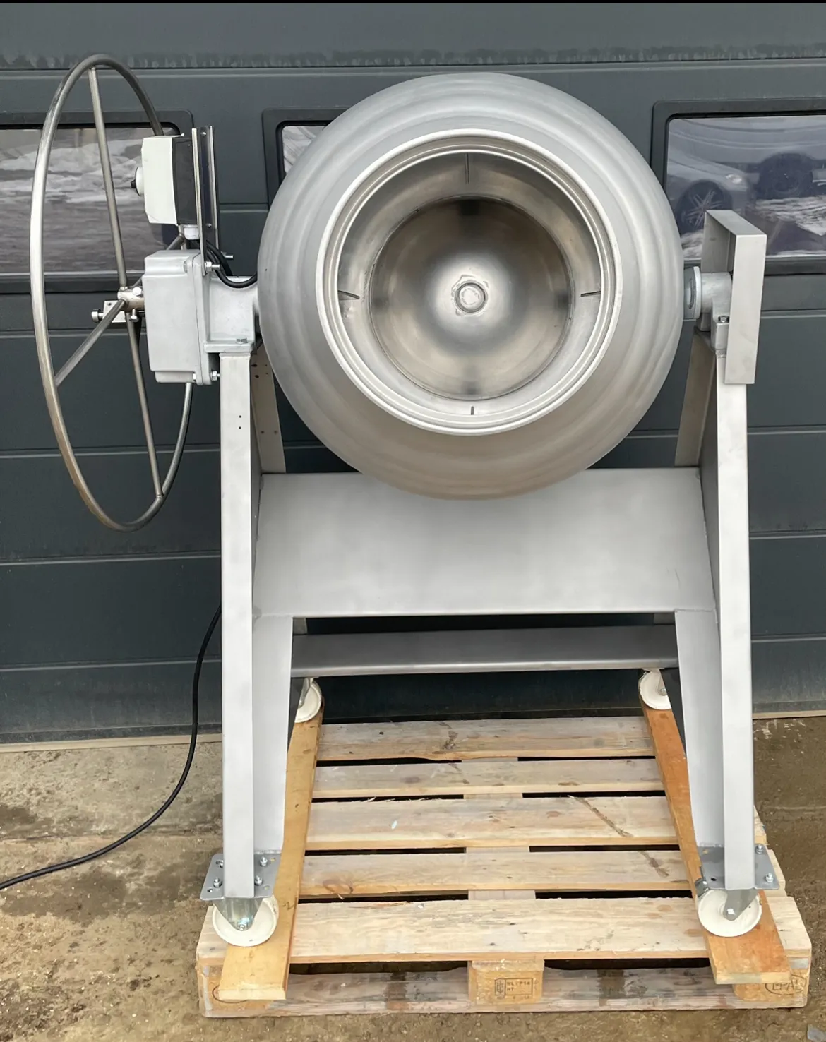 Urządzenie pochodzi z likwidacji zachodniej firmy, gdzie było wykorzystywane m.in. do mieszania proszków oraz przypraw. Brak tabliczki znamionowej – według informacji od poprzedniego właściciela jest to produkcja niemiecka.